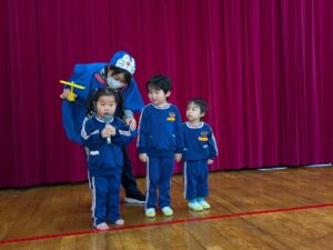 1月生まれのお友だちのお誕生会が行われました。誕生児が2人なので、ずいぶん緊張していたようですが、がんばって発表したり、ドラえもんゲームを楽しんだりすることができました。お家の方と一緒にするゲームは、子どもたちの楽しみでもあります♪今回もドラえもんの大きなお口に見事どら焼きを食べさせてあげられました。みんなもドラえもんも大喜びでした!