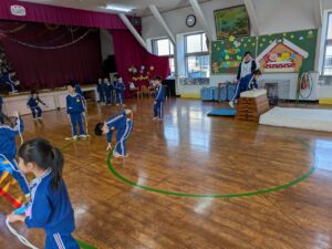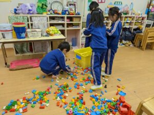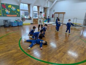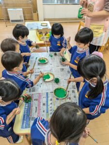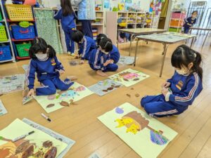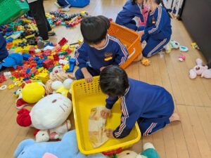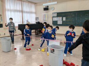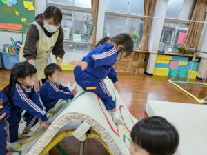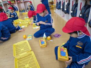 学校全体で迷路や的あて、謎解きなどいろいろな部屋があり、それをスタンプラリー形式で楽しんできました。小学生のお兄さんやお姉さんが丁寧にルールを説明してくれたり、的があてやすいように、玉が入りやすいようにとサービスしてくれたり、とてもやさしくしてくれて楽しく遊んでくることができました。こんなに素敵なお兄さん・お姉さんがいる小学校に、みんなも早く行きたいね♪小学校への期待がグン、と大きくなった経験でした(#^^#)