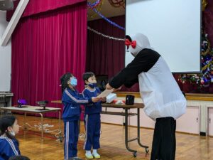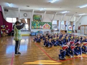 12月のお誕生会をしました。今月も素敵な鳥さんが来て、みんなをお空のお誕生会に連れていってくれました。もちろん、今回もドラえもんからタケコプターを貸してもらったね♪ステージの上ではちょっぴり緊張している子どもたちでしたが、プレゼントをもらって口元がにっこり✨もらった色紙はすぐにドラえもん&ドラミちゃんバッグに大事にしまっていました。みんな、お誕生日おめでとう!