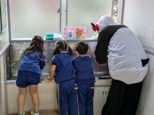 年長組が柏崎小学校に招待され、小学校の行事『わくわくランド』へ行ってきました。
