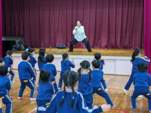 元気いっぱいの真帆先生とのキッズダンス!年長さんは、去年も真帆先生にダンスを教えてもらっていましたが、それをよく覚えていました!とても楽しかったようですね。時々休憩をはさみながら少しずつダンスの振り付けを覚え、最後には1曲しっかり踊ることができました!終始笑顔で楽しい時間でした♪