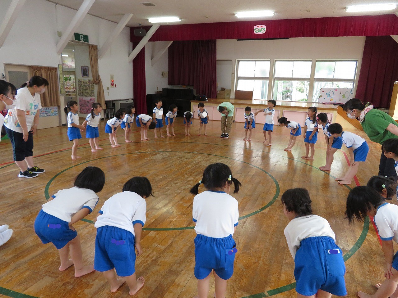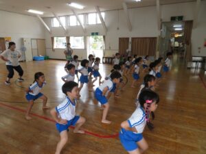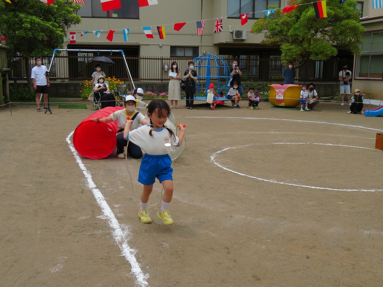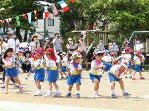 6月18日(土)幼稚園で運動会をしました。感染症対策のため今年も3部に分けての開催です。この日のために、走ったり踊ったり、とっても頑張って練習してきた子どもたち。お家の人にかっこいいところを見てもらおうとみんな張り切ってできましたね。保護者の皆様、地域の皆様のご協力をいただき無事に運動会を開催することが出来ました。本当にありがとうございました。
