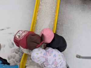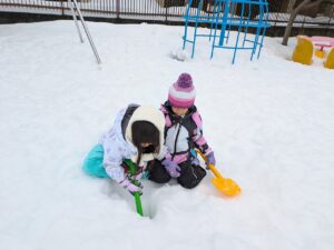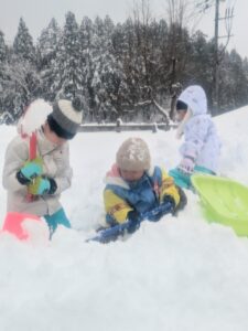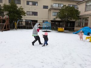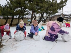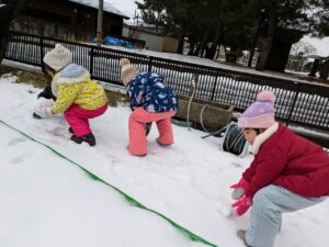 今年は早いうちから園庭にも雪が積もり、毎日のように雪遊びができました!こんなにたくさん雪遊びができたのも久しぶりな気がします。子どもたちも雪に対する抵抗もなく、日々ダイナミックに雪あそびを楽しんでいました!雪の落とし穴を掘ったり雪山を頭から滑ったり、大きな雪だるまもたくさん作ったね。かまくらだって作れたよ♪たくさん雪遊びをしたので、準備やぬれた時の着替えだって自分で上手にできるようになったね~。この時期にしかできない楽しい経験がたくさんできました✨